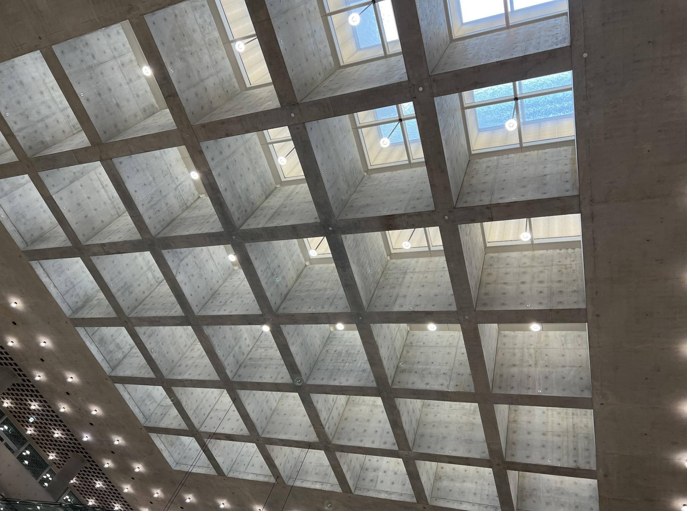 이 건물에서 건축적으로 가장 멋있는 곳을 뽑자면, 아마 와플슬래브 구조가 아닐까 싶습니다 :)